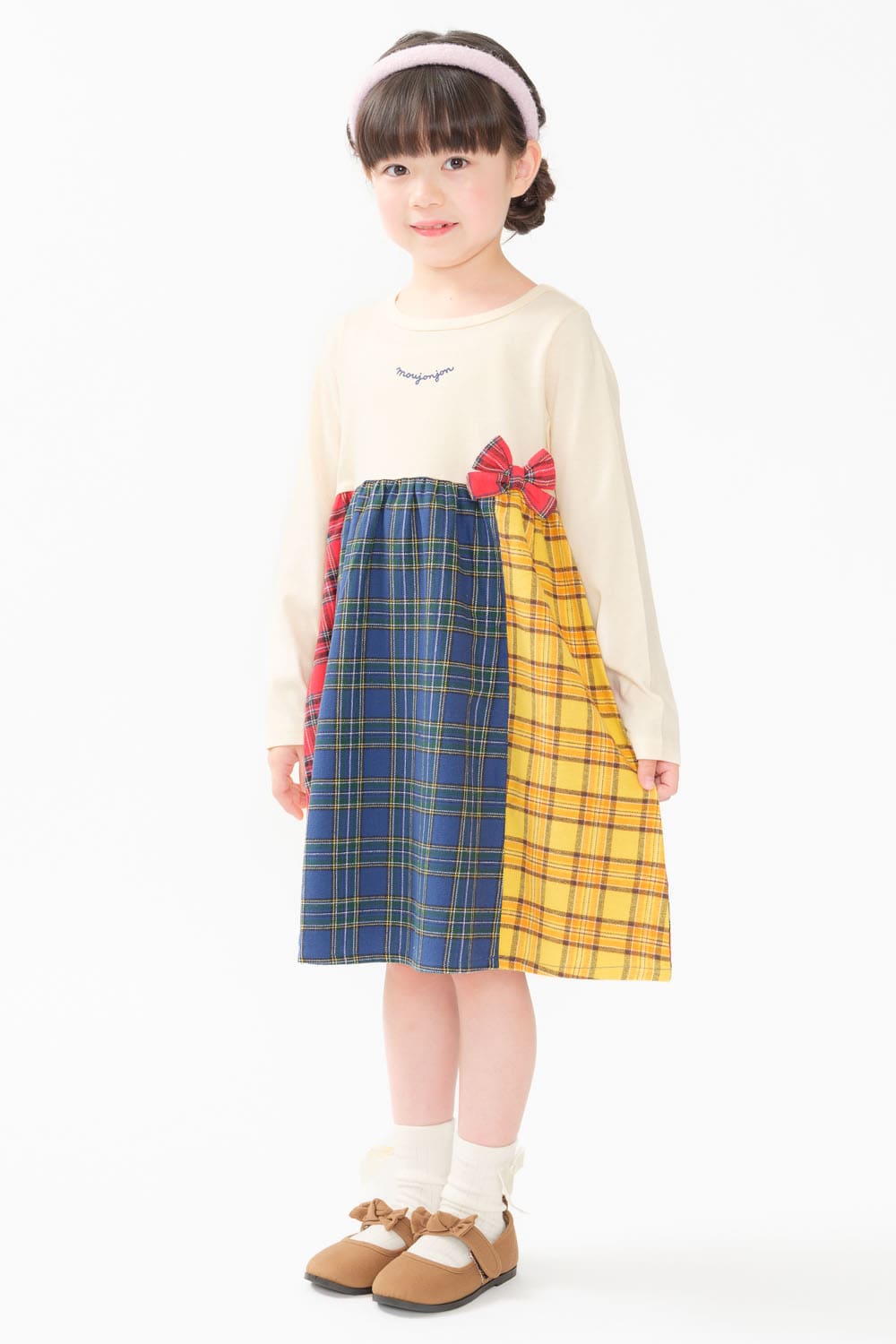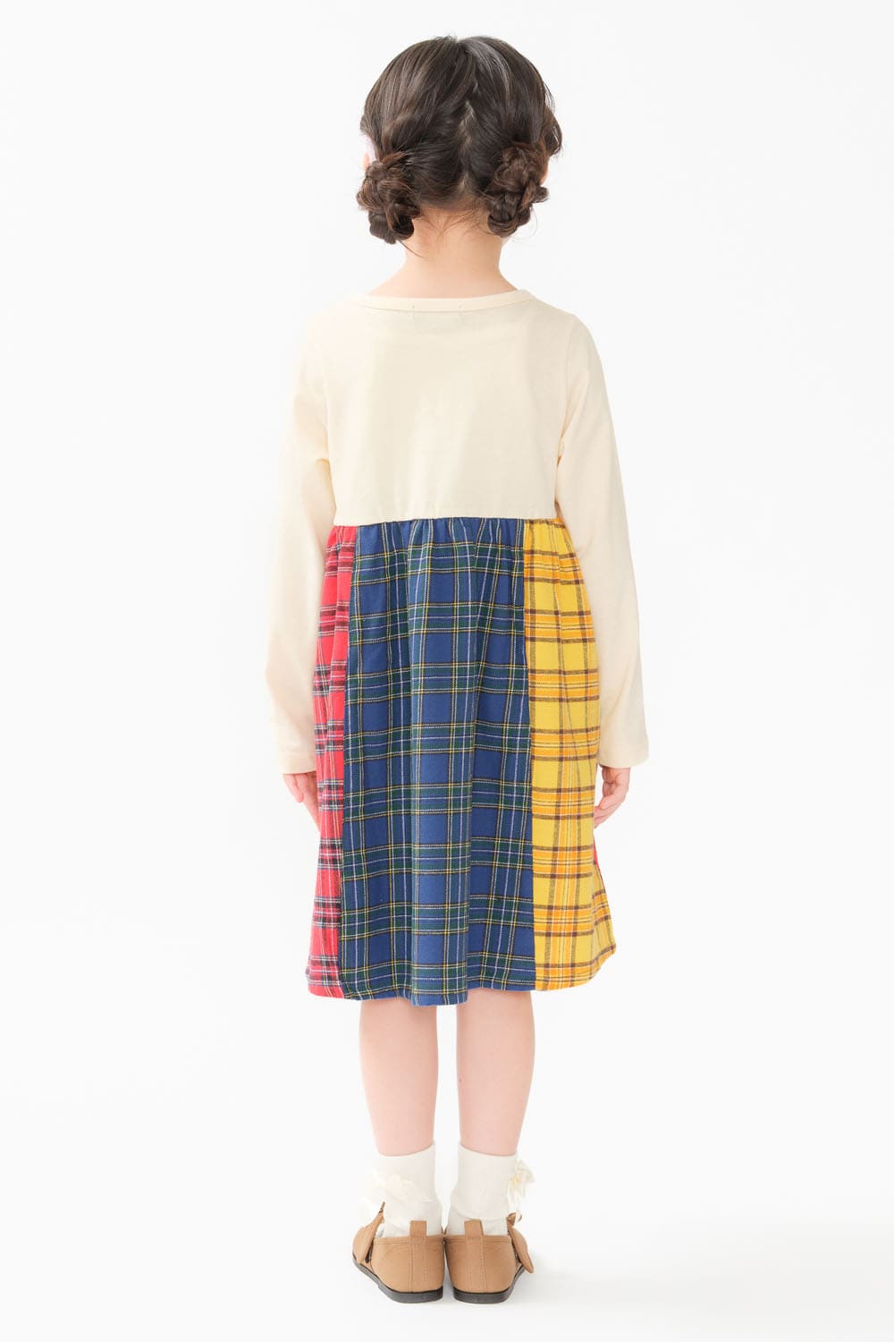 チェック切替長袖ワンピース
