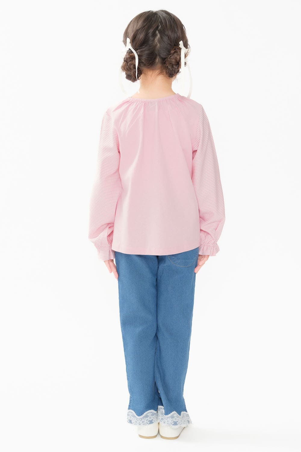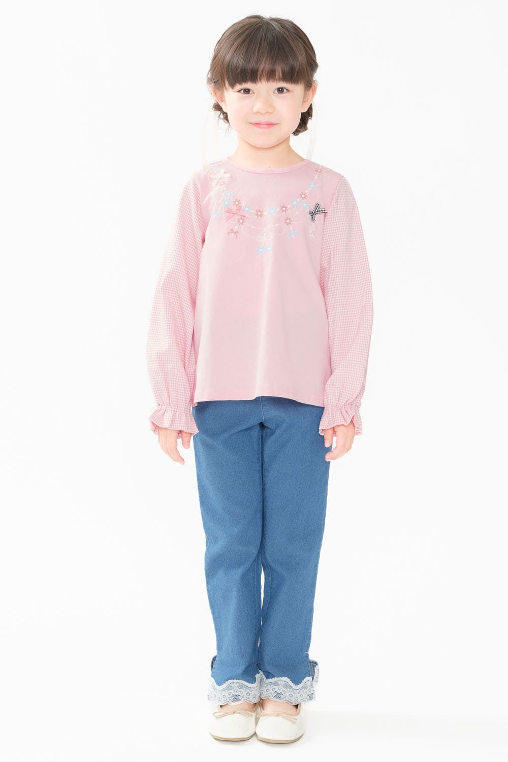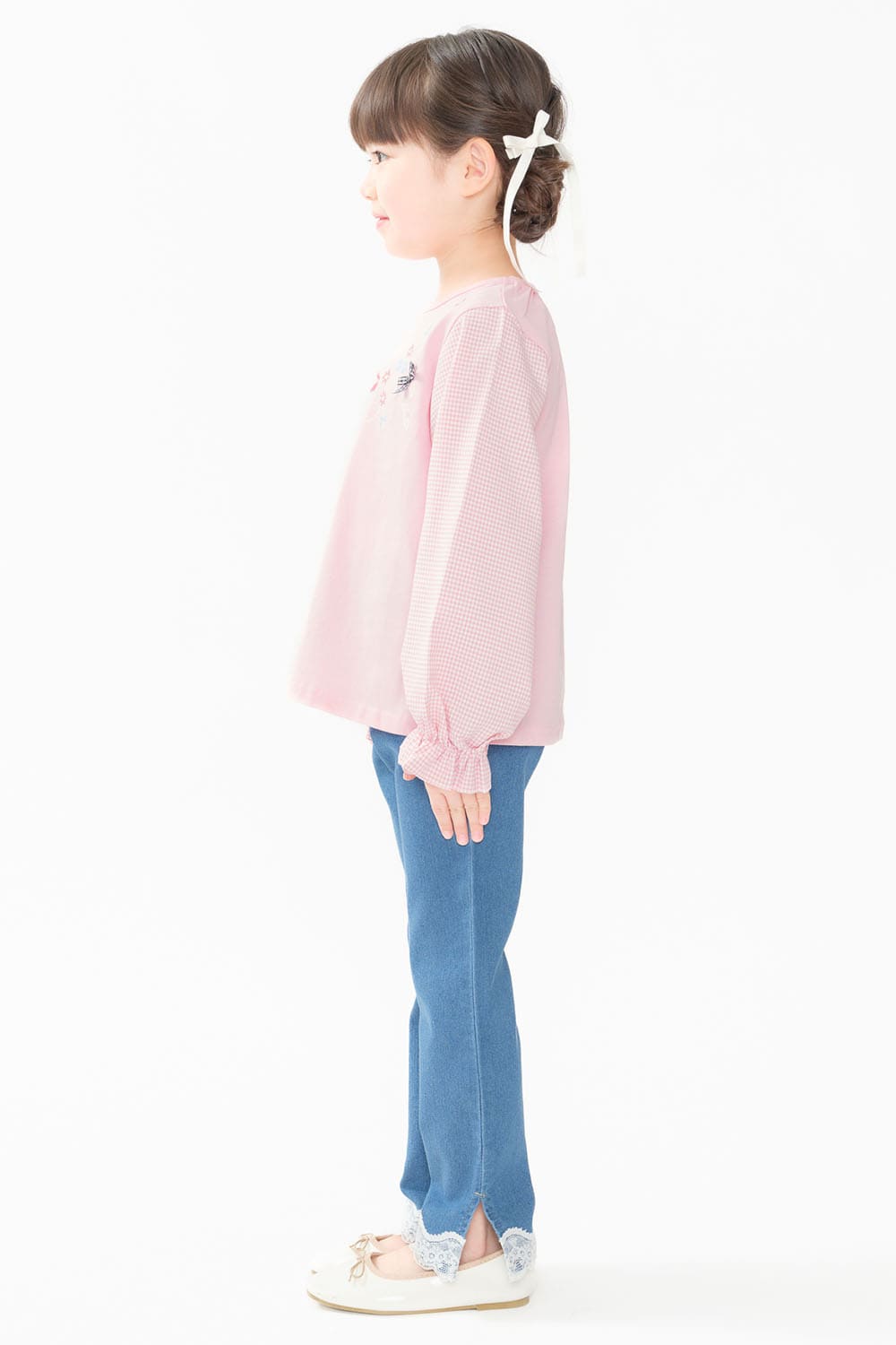 裾リボン・レースデニムロングパンツ