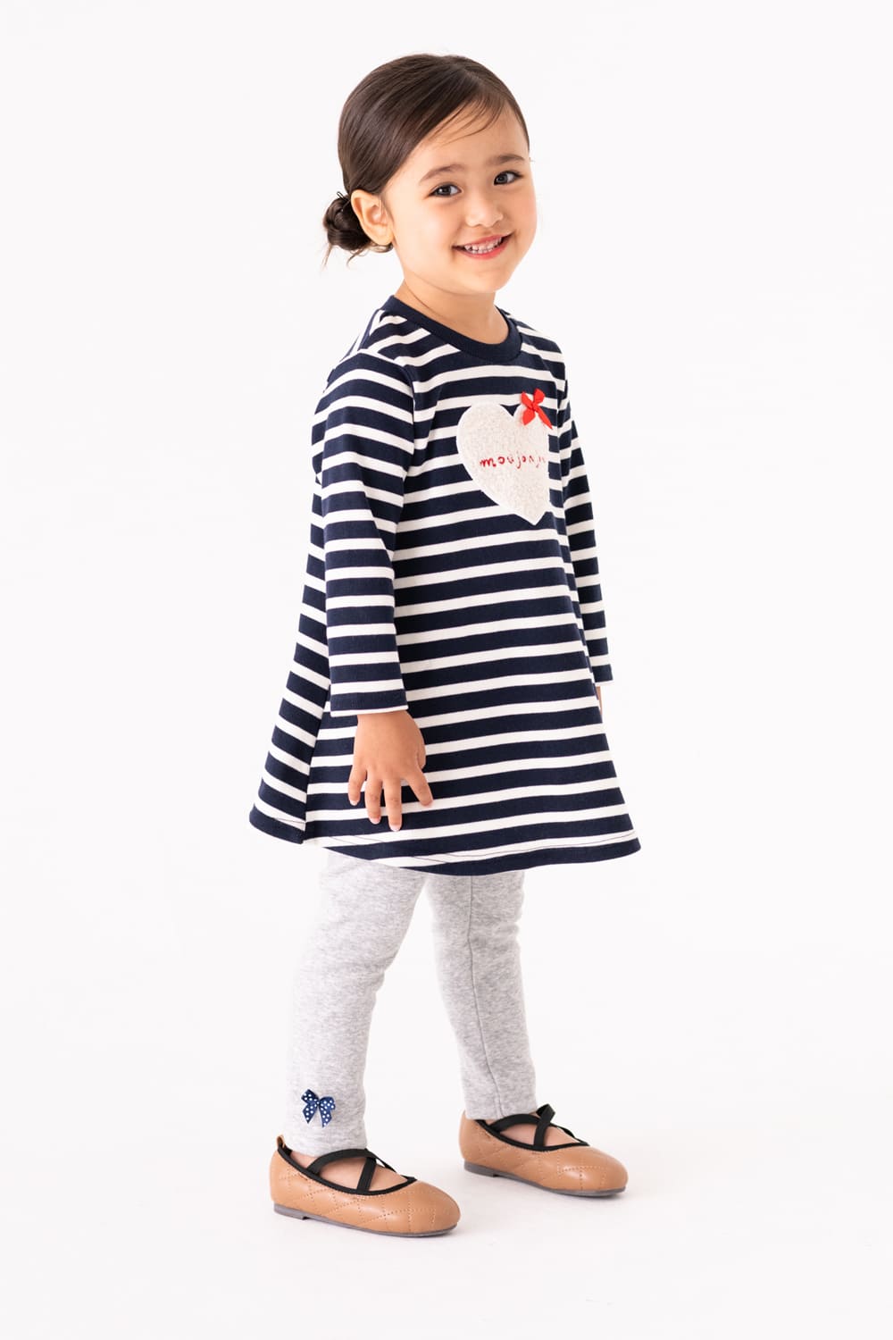 *ボーダーボアハートアップリケ裏毛ワンピース