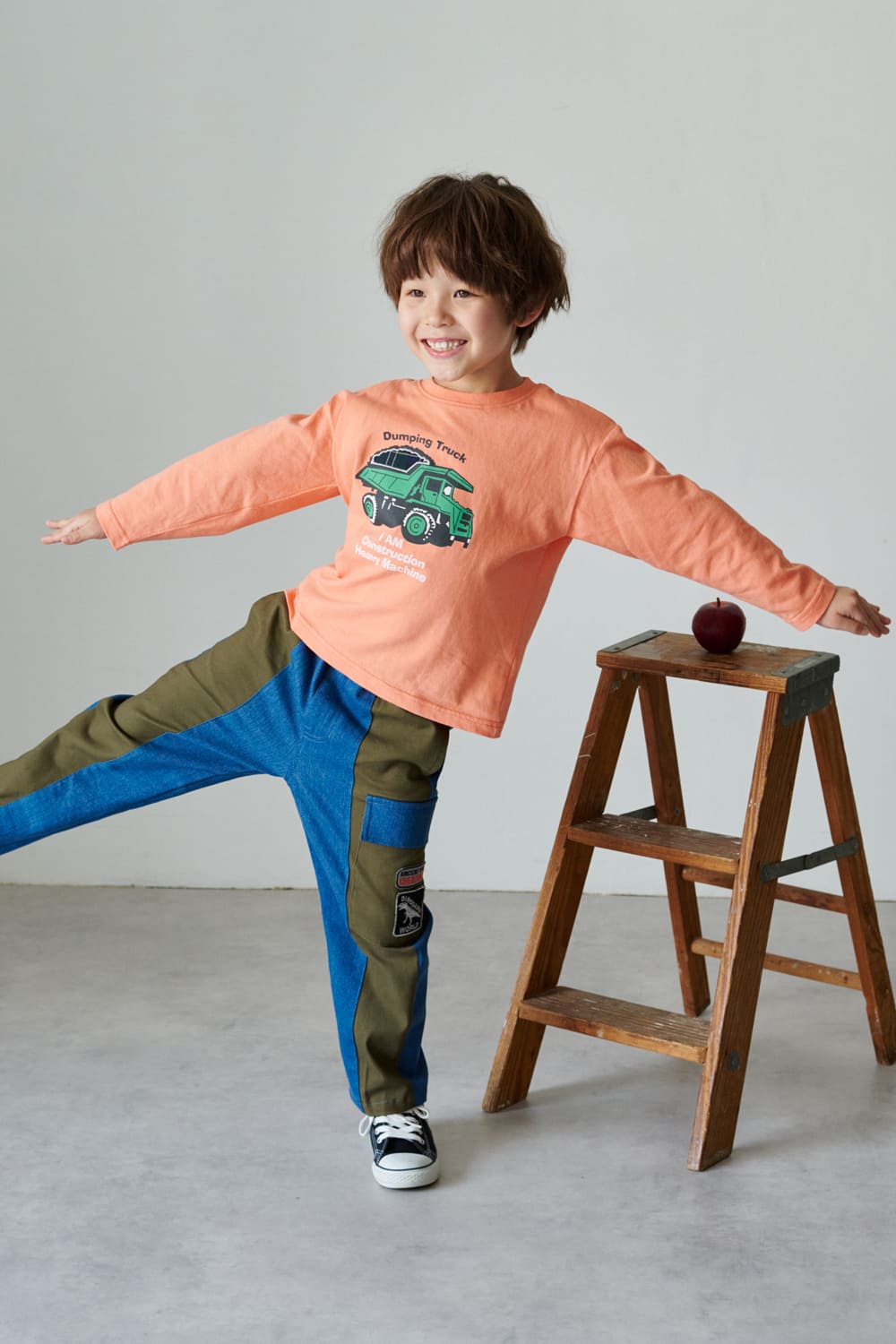 *恐竜・働く車プリント長袖Tシャツ