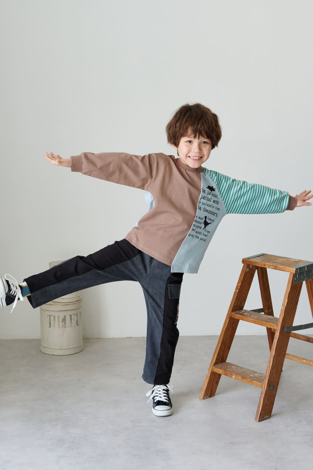 *恐竜ロゴプリント配色切替長袖Tシャツ