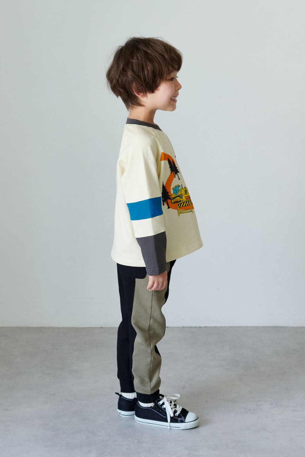 *恐竜刺繍切替裾リブ裏毛ロングパンツ