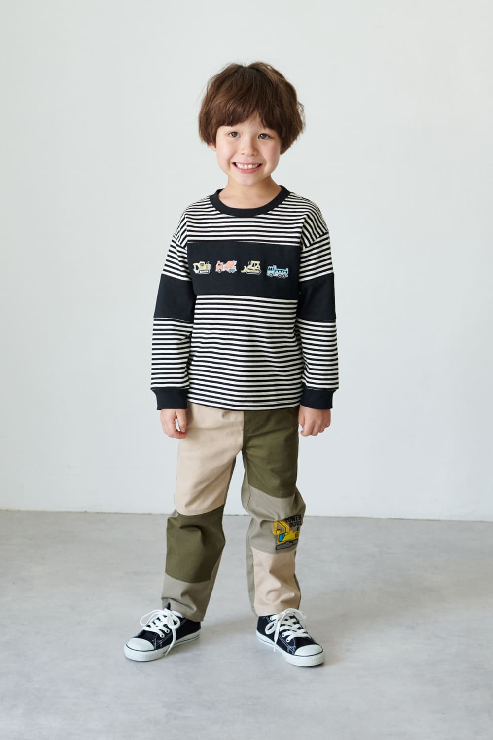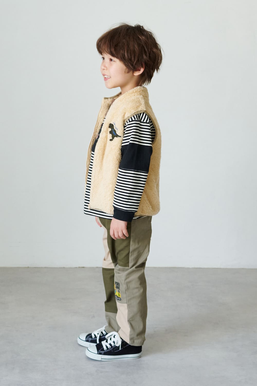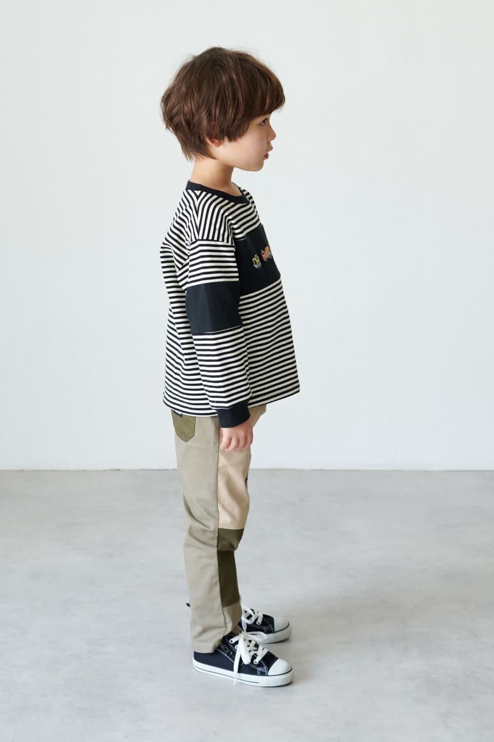 *恐竜ロゴプリント配色切替長袖Tシャツ