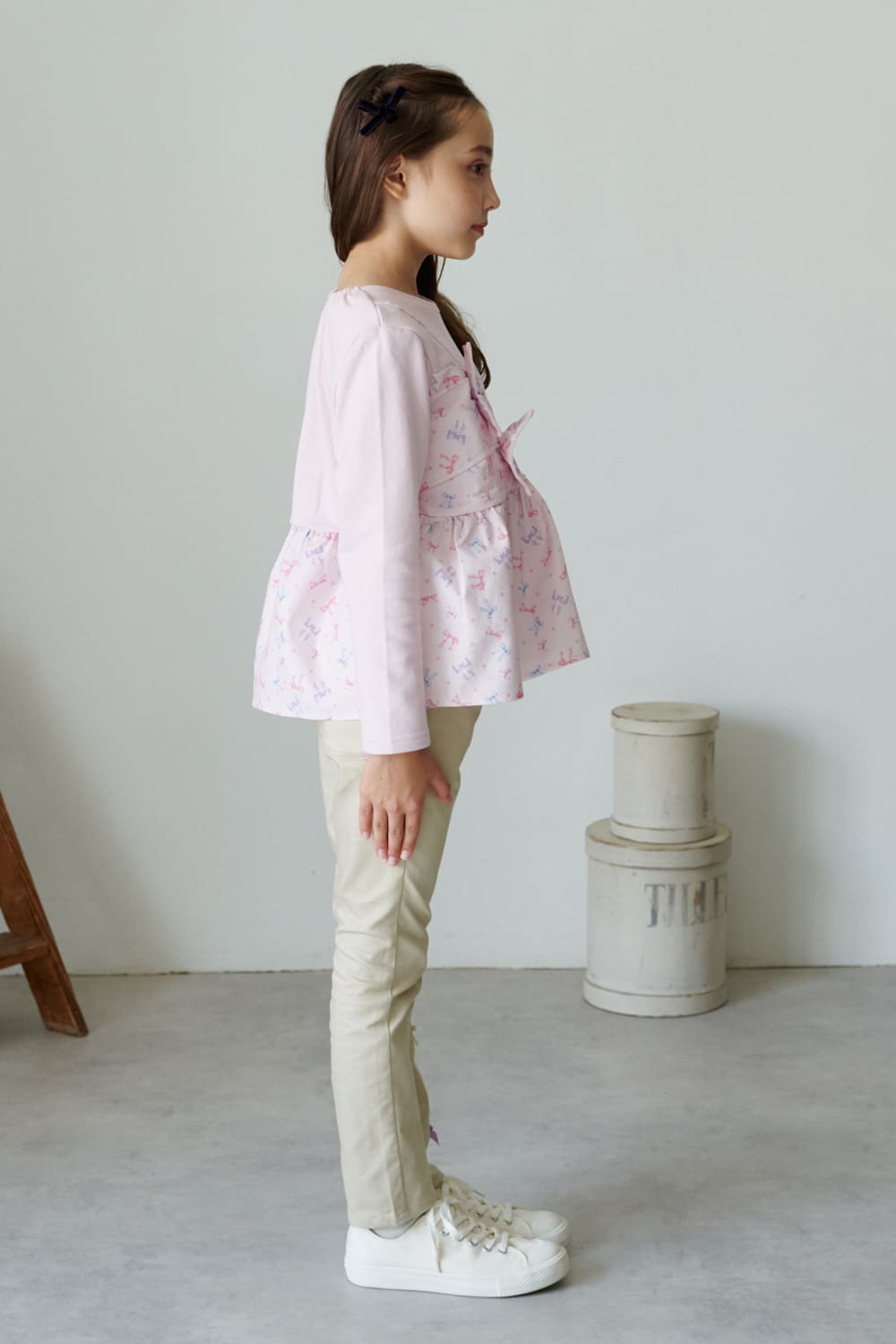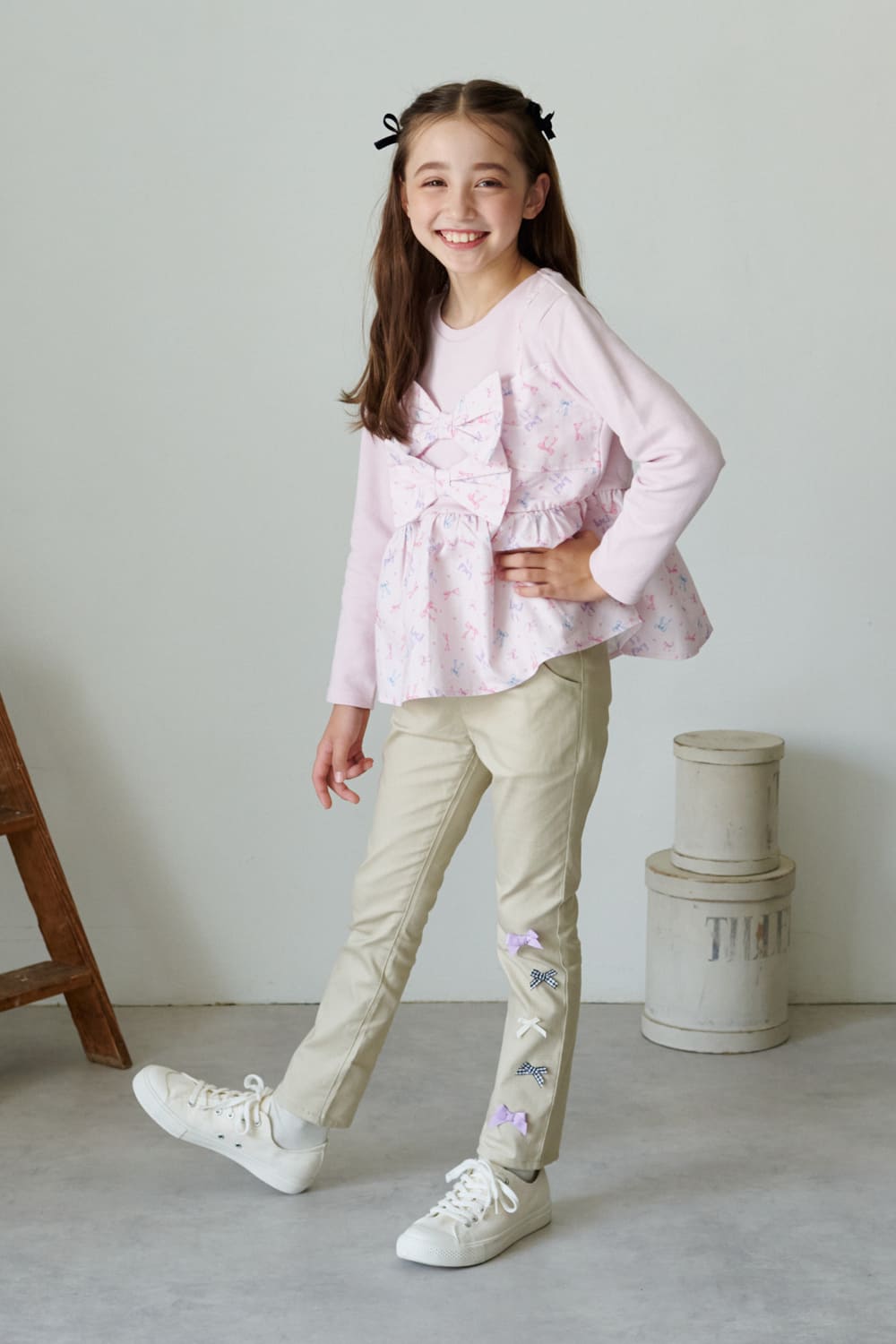 *リボン付きツイルロングパンツ