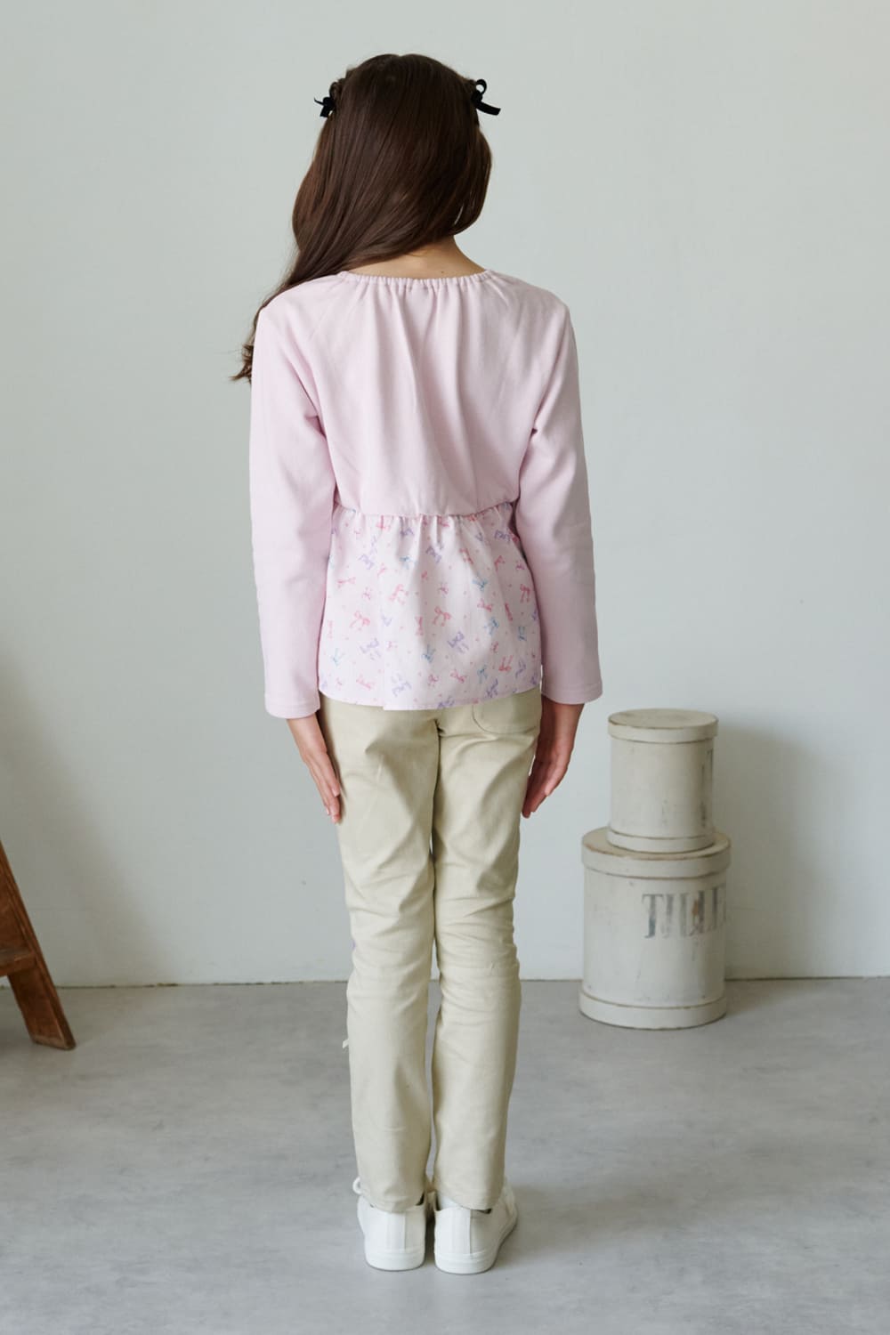 *リボン柄キャミ重ね着風裏毛トレーナー