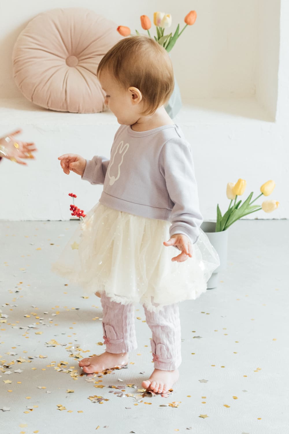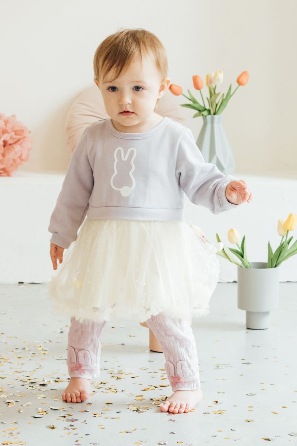*キラキラハート柄チュールスカート裏毛長袖ワンピース