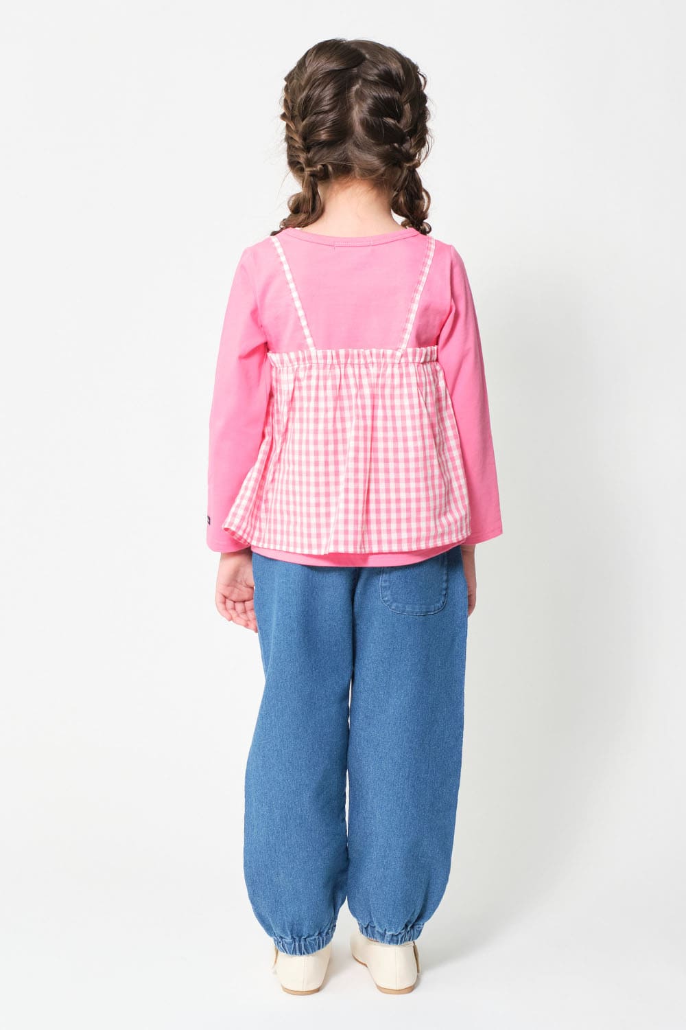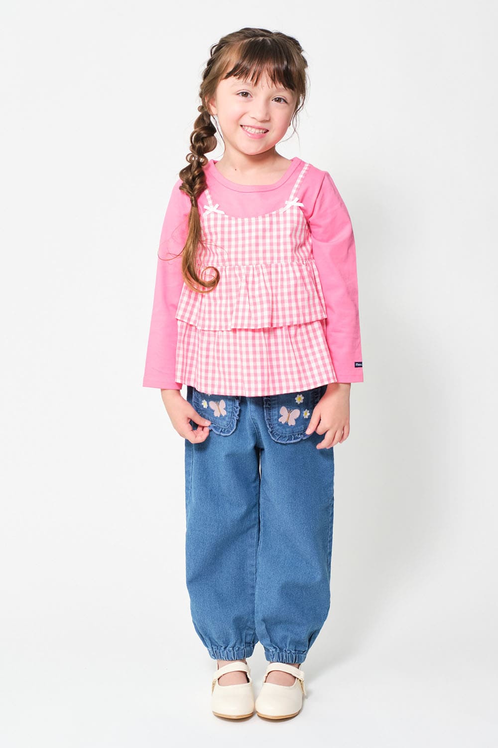 ギンガムチェック柄キャミ付長袖Tシャツ