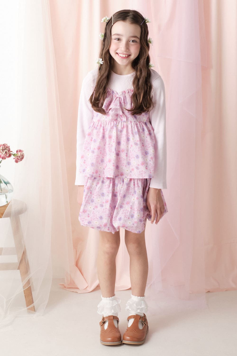 チェック・お花柄バルーンスカートパンツ