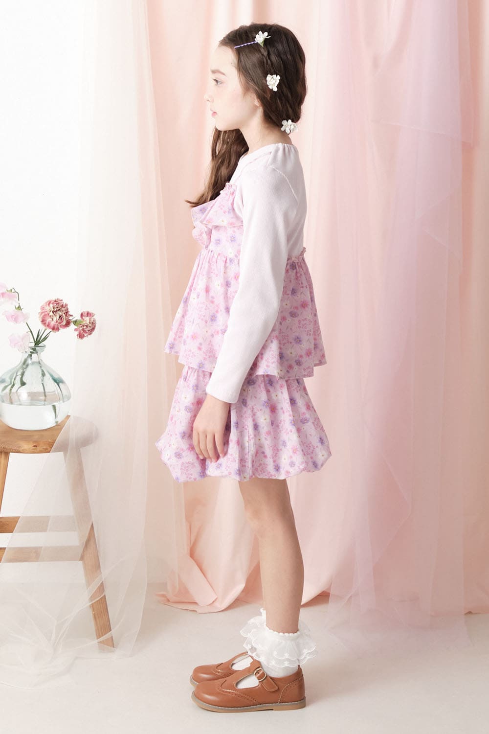 チェック・花柄キャミ付長袖Tシャツ