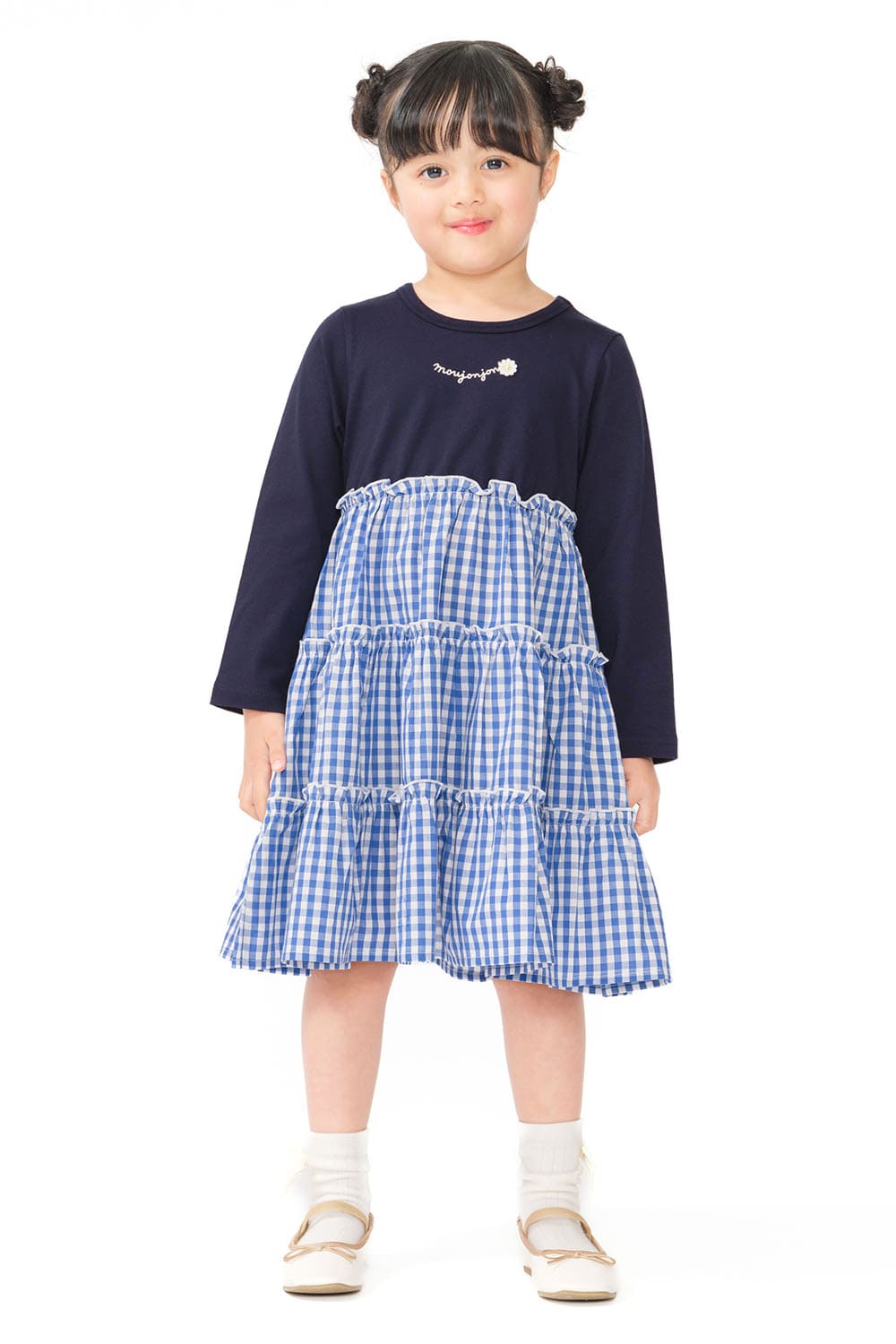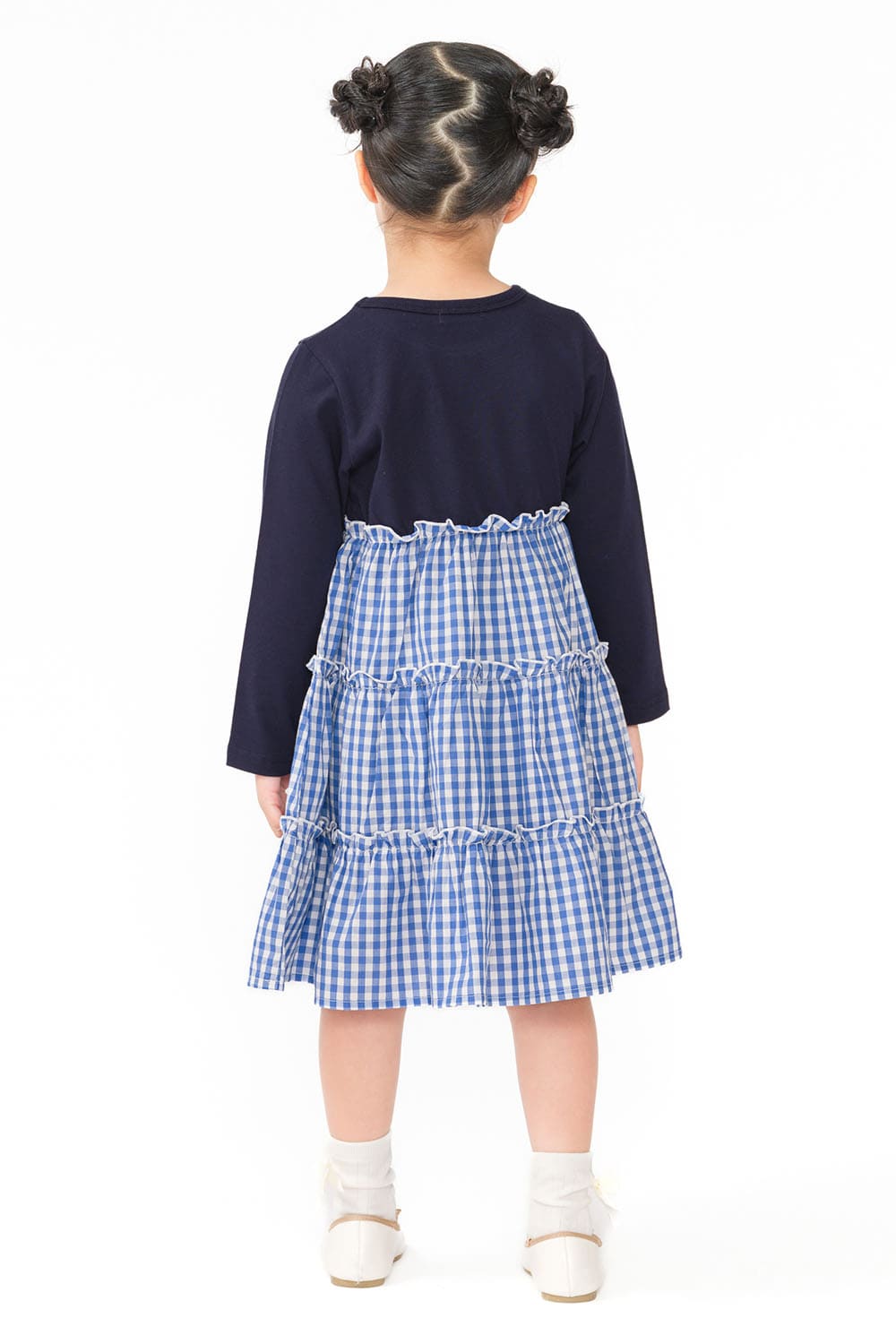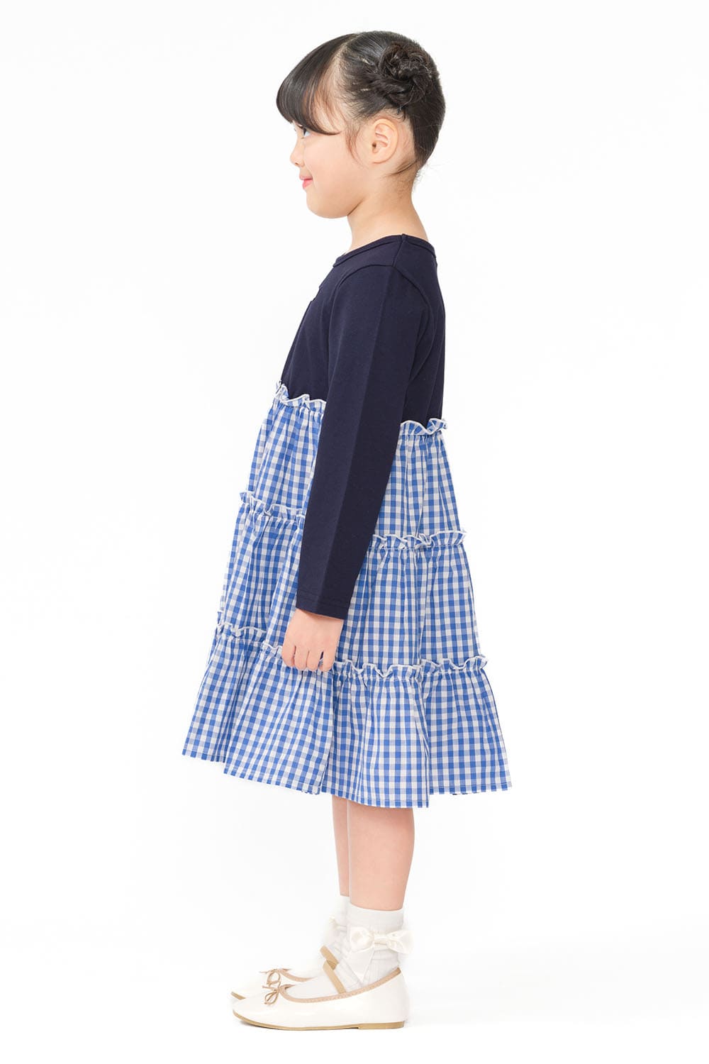 *ギンガムチェック切替長袖ワンピース