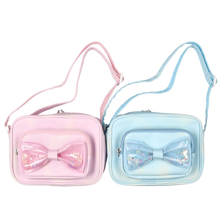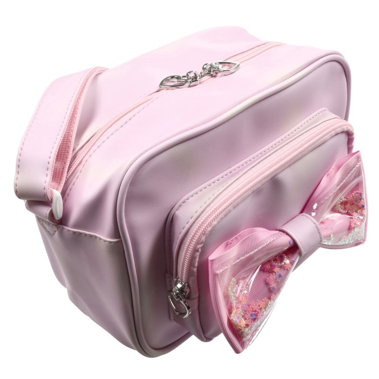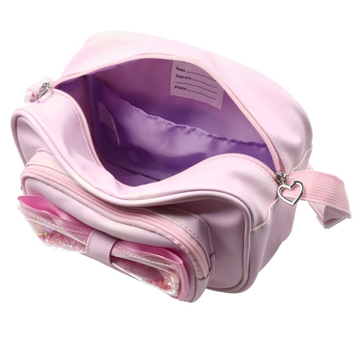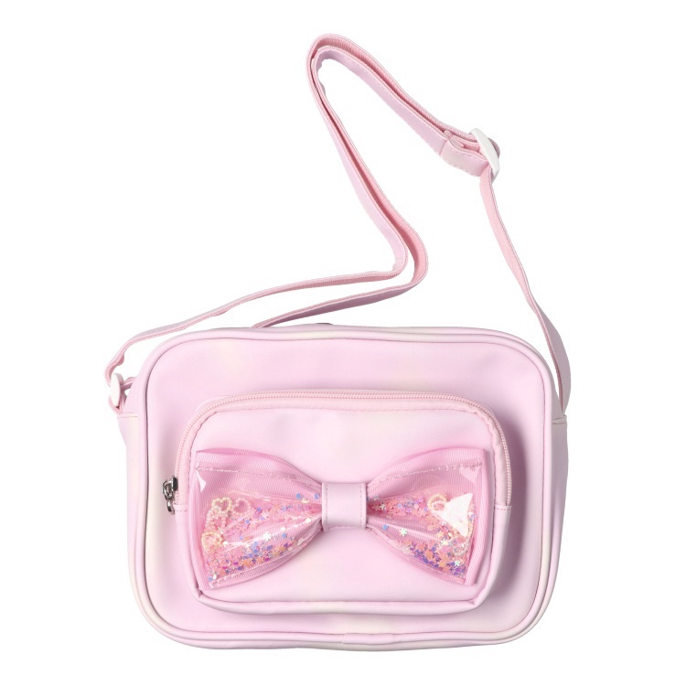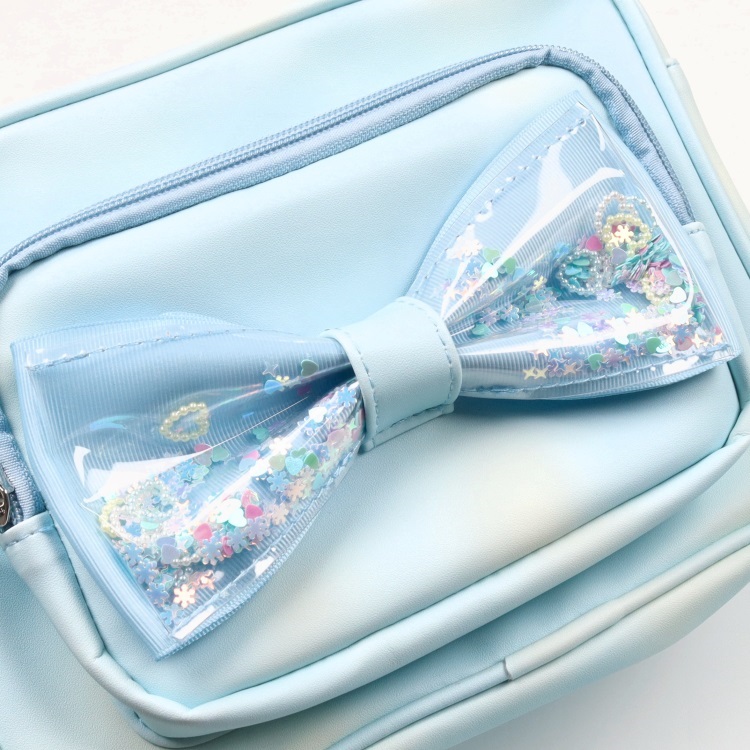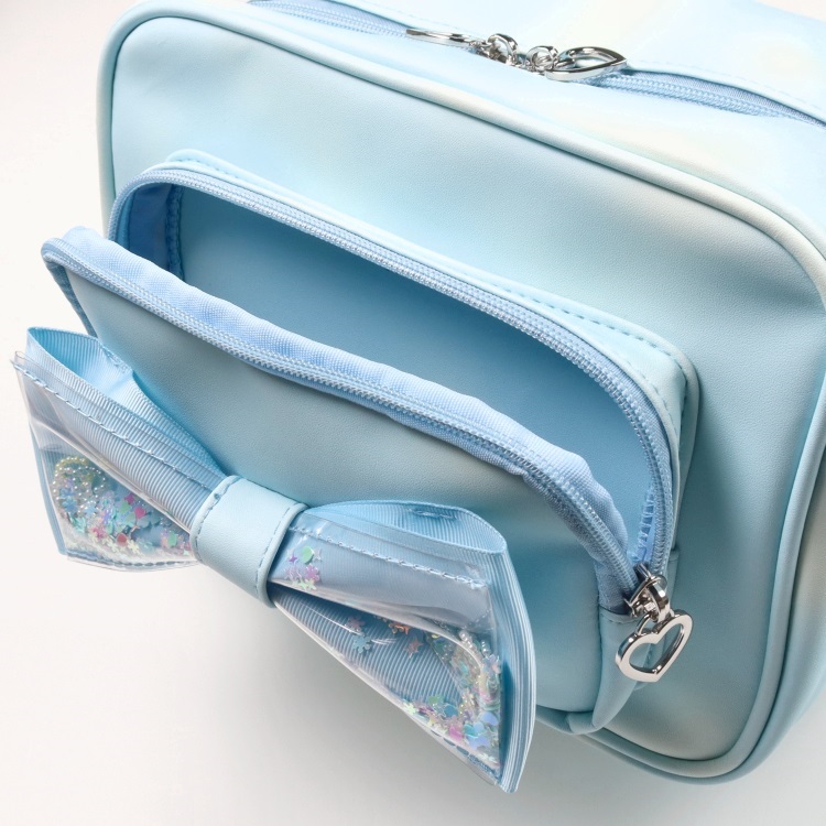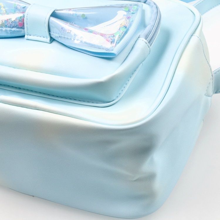 ビニールのリボンにはキラキラのスパンコールやビーズが入っており、トレンド感のある通園バックです。