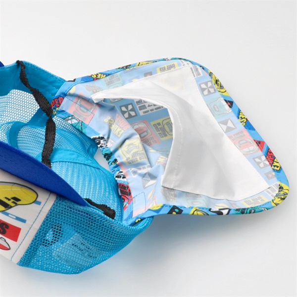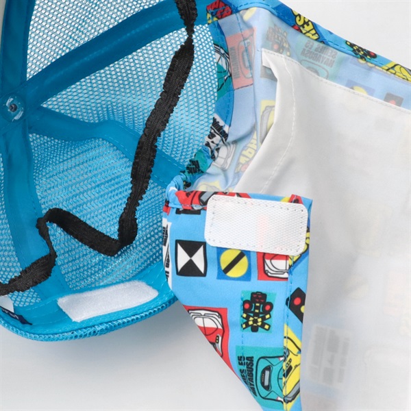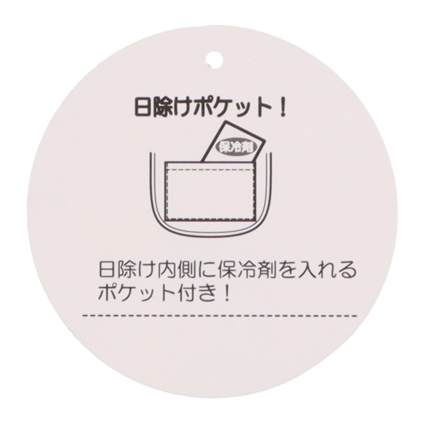 総柄の日除けのたれには保冷剤を入れるポケット付。