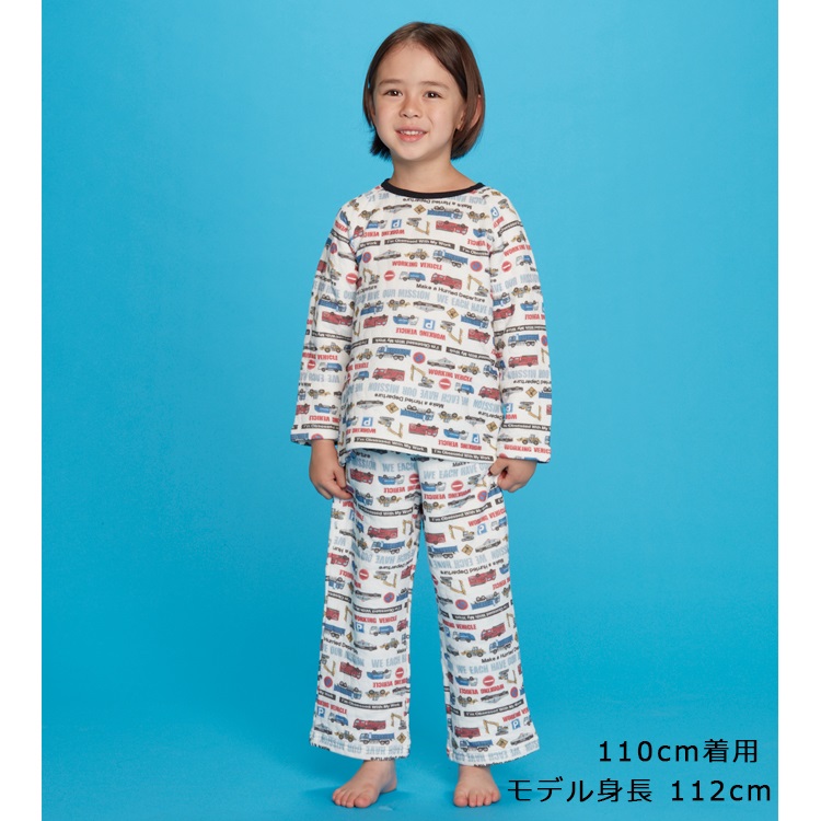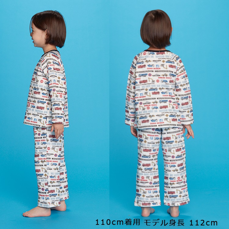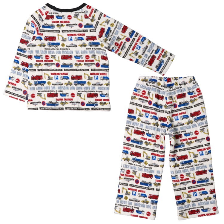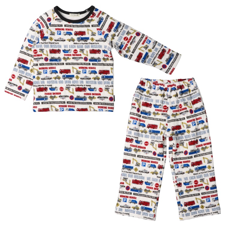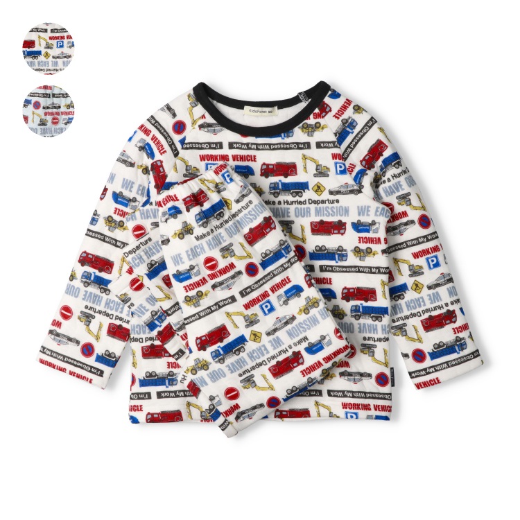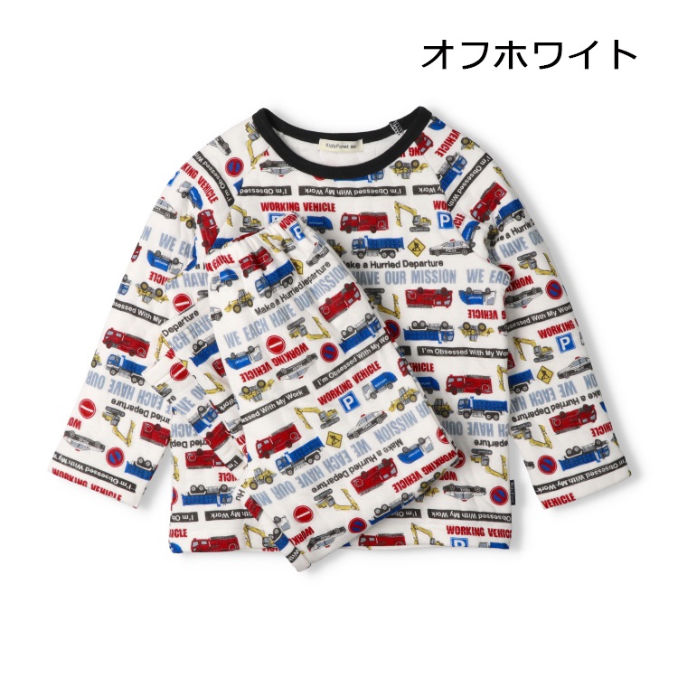 働く車総柄長袖キルトパジャマ(オフホワイト-110cm)