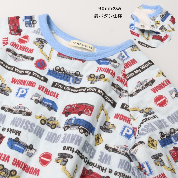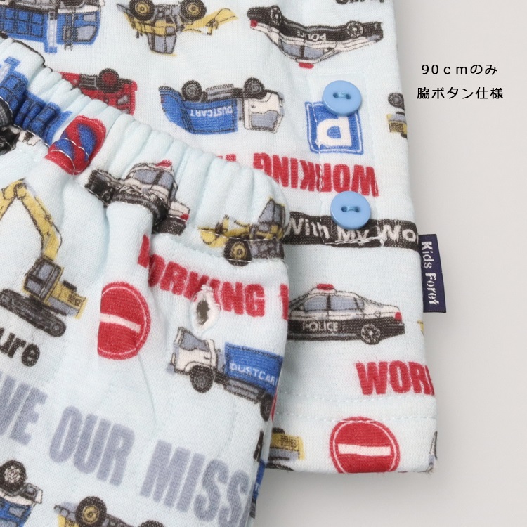 働く車総柄長袖キルトパジャマ(ブルー-90cm)
