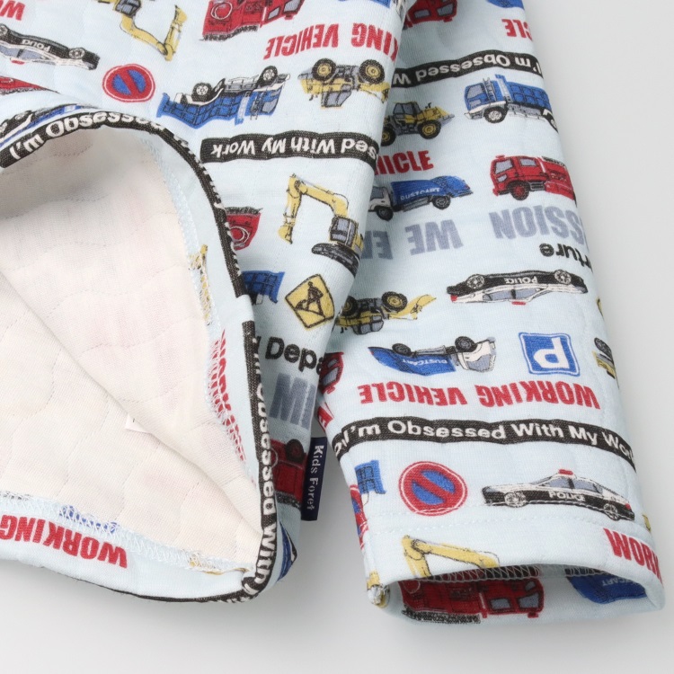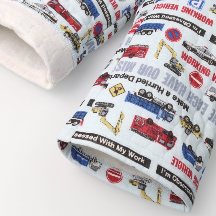 働く車総柄長袖キルトパジャマ(ブルー-100cm)