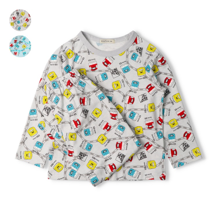 JR新幹線電車総柄長袖パジャマ(グレー-100cm)