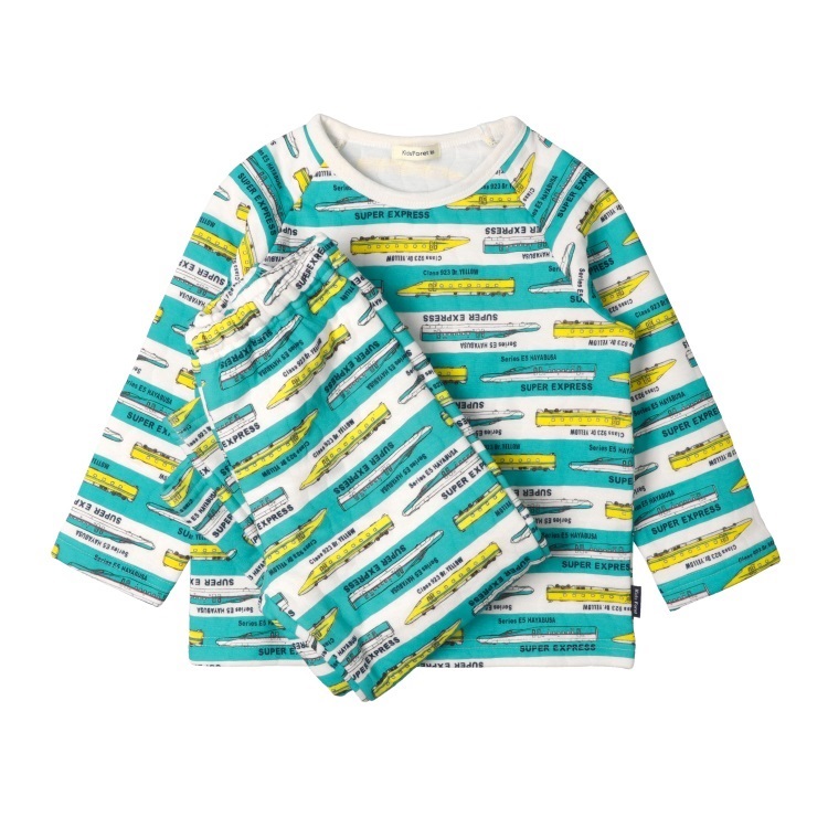 JR新幹線電車総柄長袖キルトパジャマ(グリーン-90cm)