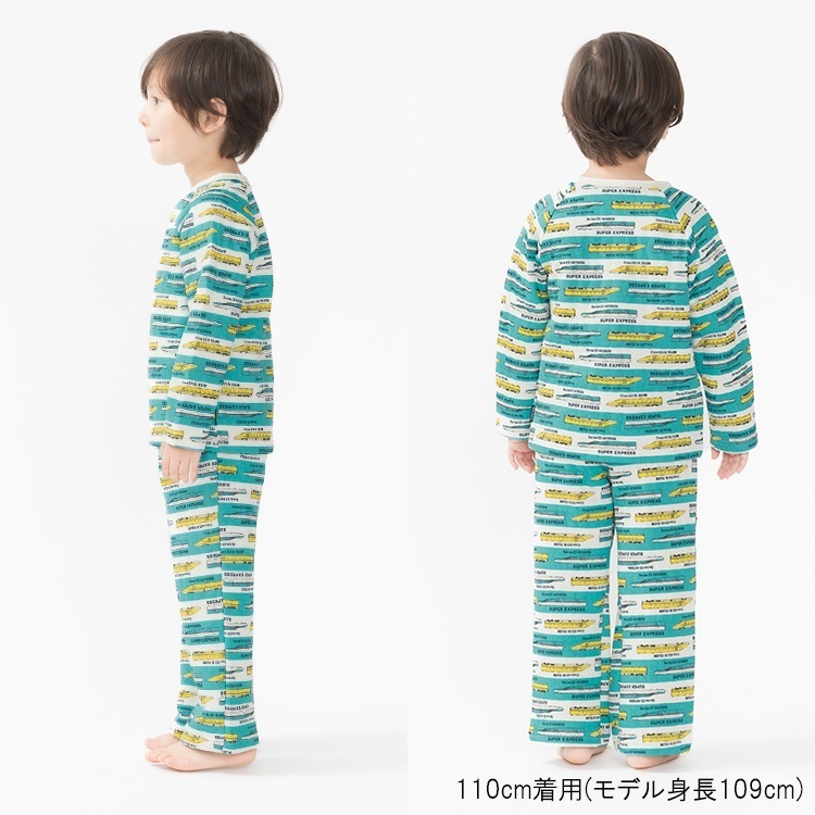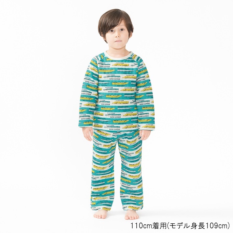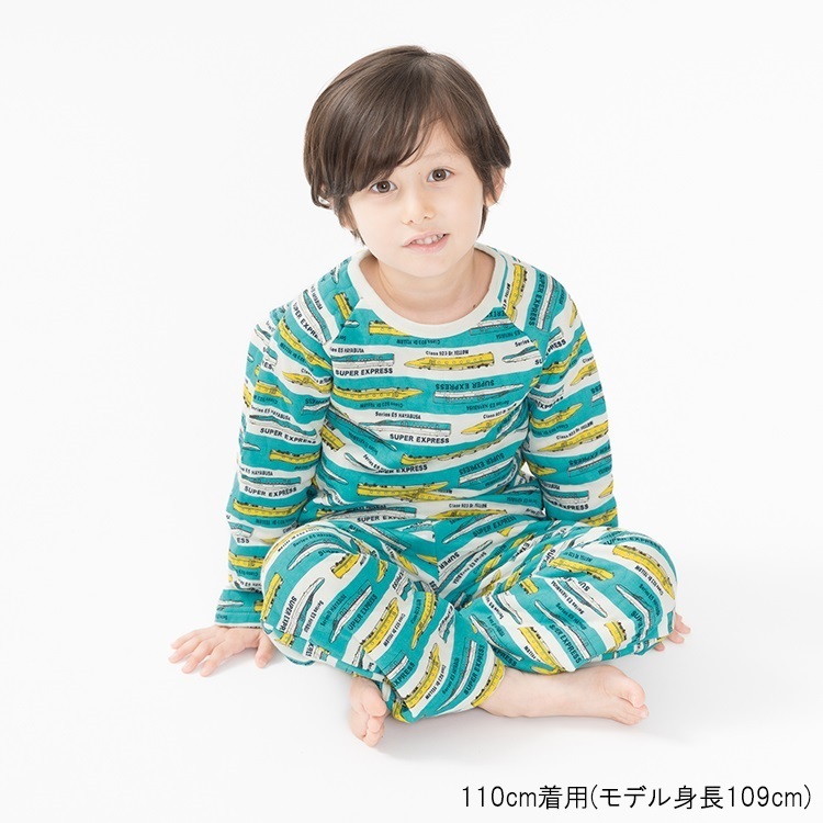 JR新幹線電車総柄長袖キルトパジャマ(グリーン-110cm)