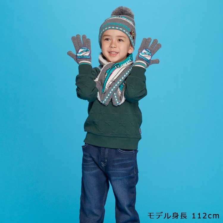 同じ電車柄のニット帽(B55483)、マフラー(B55898)と合わせて着用するのもオススメ!