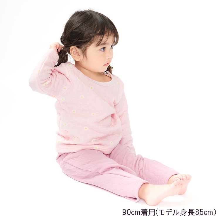 【WEB限定】【90~160cm】小花柄キルト長袖パジャマ(ピンク-90cm)