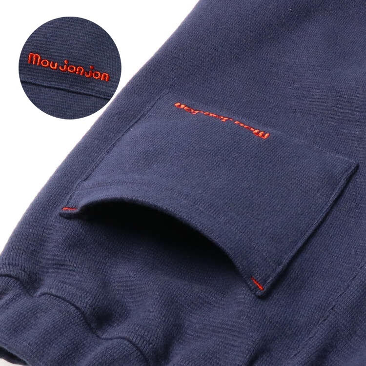 後ろのポケットにはmoujonjonの刺繍入り。