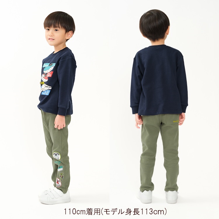 伸びもよく柔軟なリップル素材で、たくさん動くお子様にぴったりなロング丈パンツ、長パンツ。