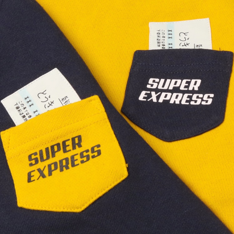 前身頃の裾には人気の新幹線のこまち、はやぶさ、ドクターイエロー、のぞみのプリント入り。