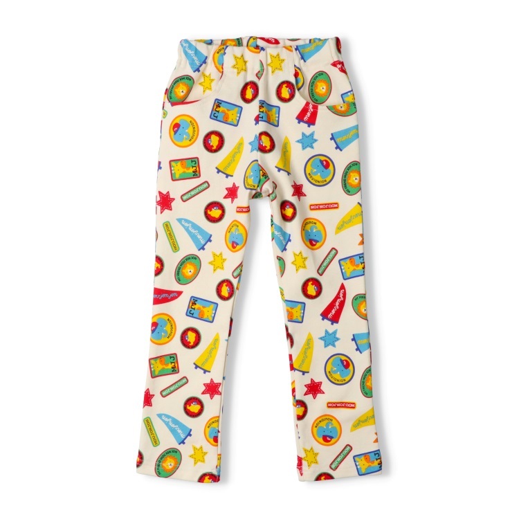 *ワッペン総柄フライスロングパンツ(オフホワイト-100cm)