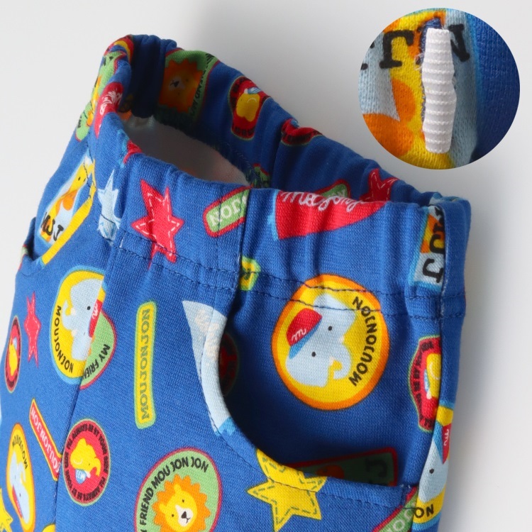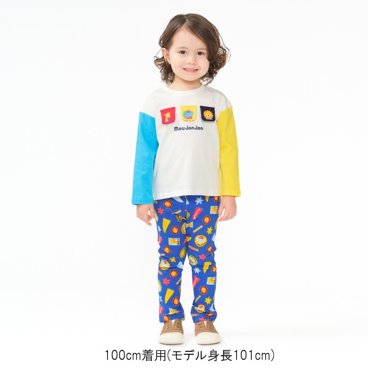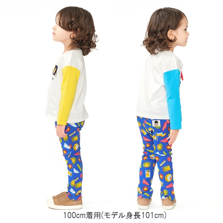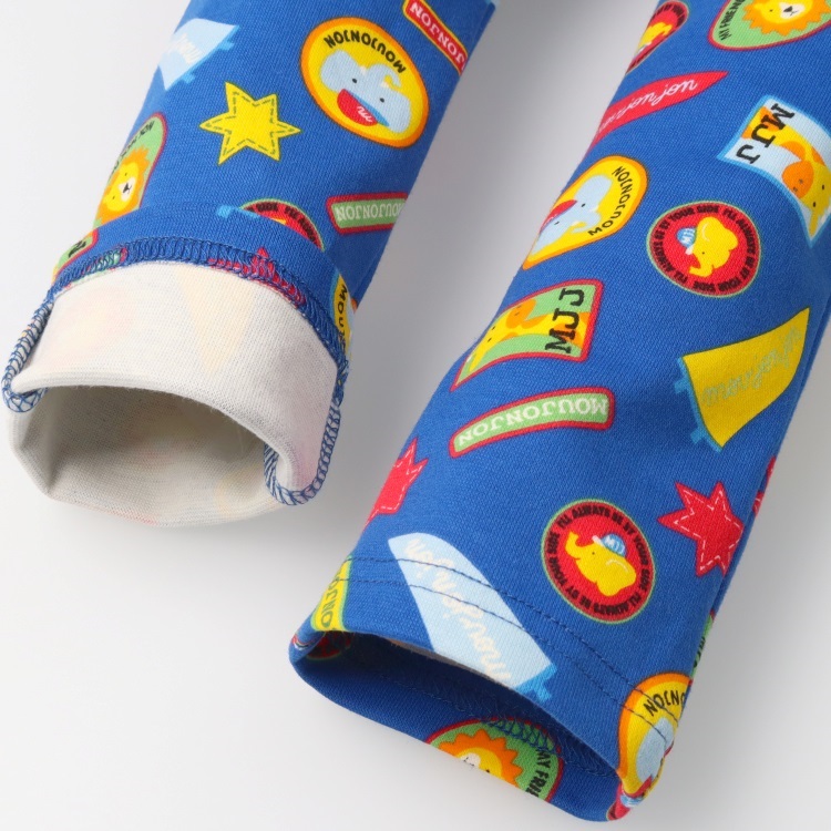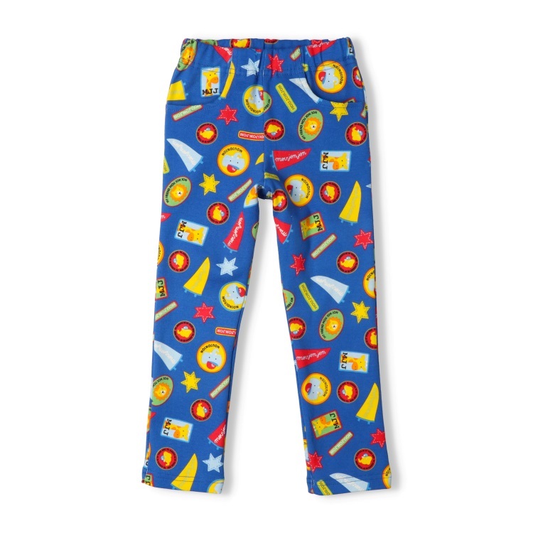 *ワッペン総柄フライスロングパンツ(ブルー-100cm)