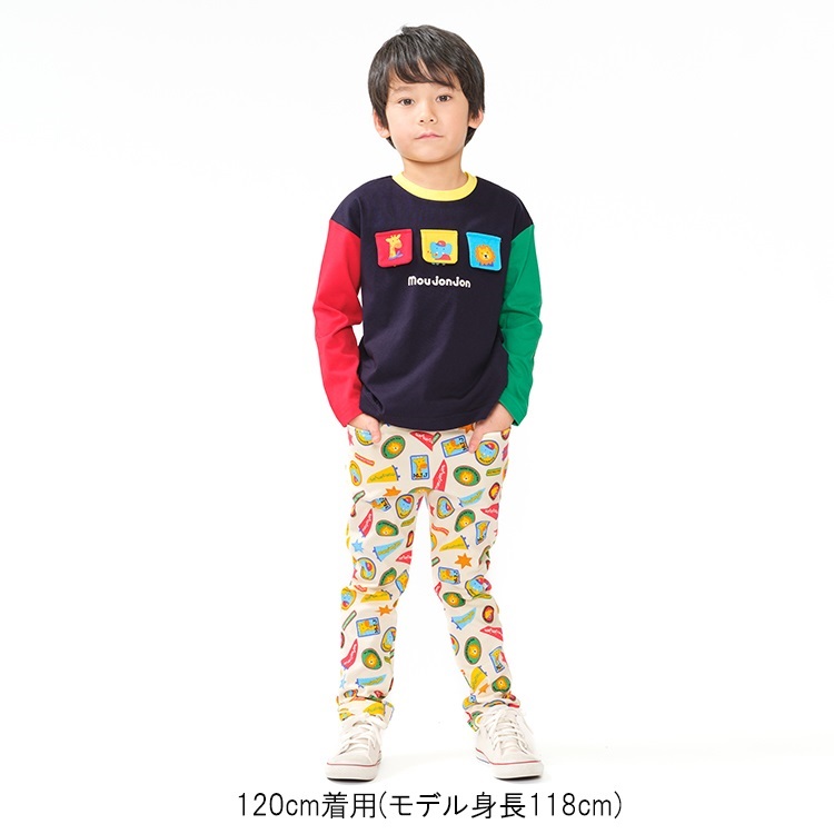 *ワッペン総柄フライスロングパンツ(オフホワイト-120cm)
