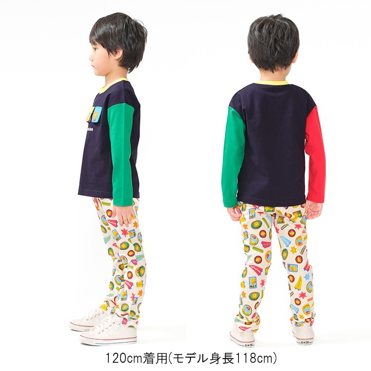 *ワッペン総柄フライスロングパンツ(ブルー-120cm)