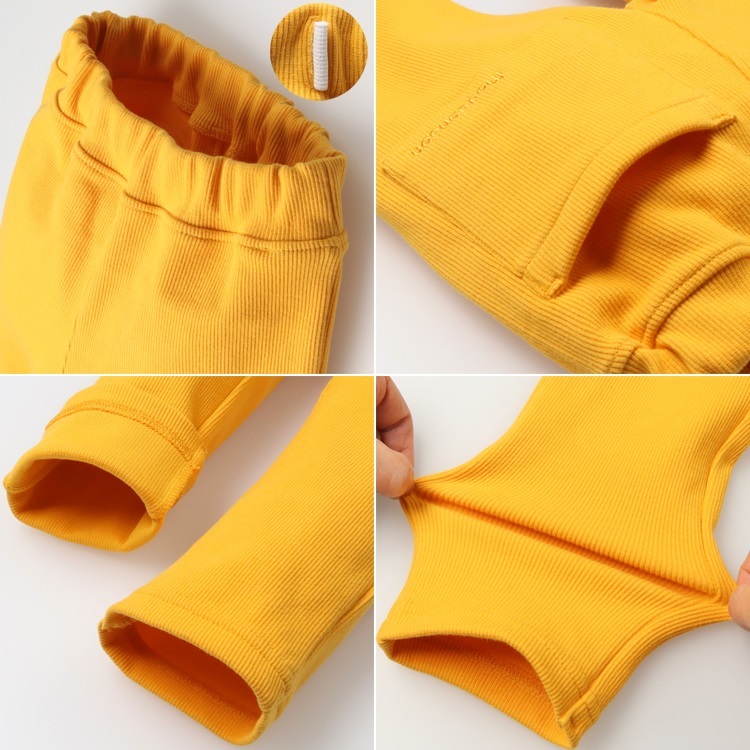 *【WEB限定】テレコ無地ロングパンツ(イエロー-80cm)