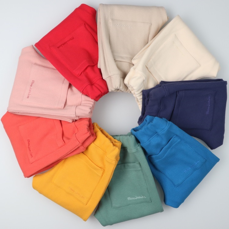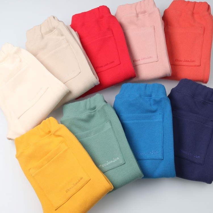 後ろのポケットには同色のmoujonjonの刺繍入り。
