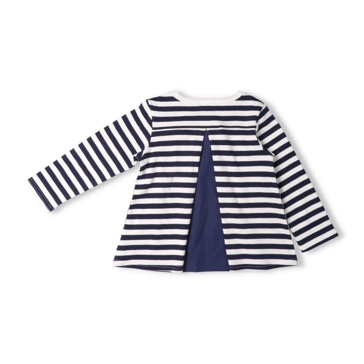 *後ろ切替ボーダー長袖Tシャツ(ネイビー-80cm)