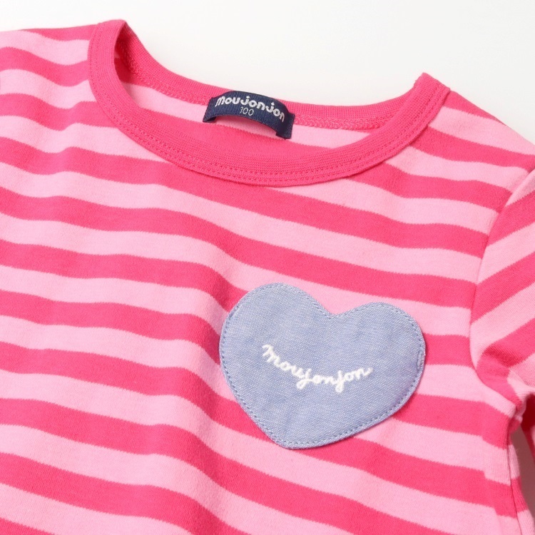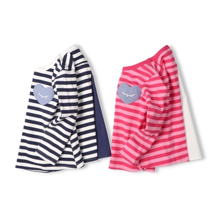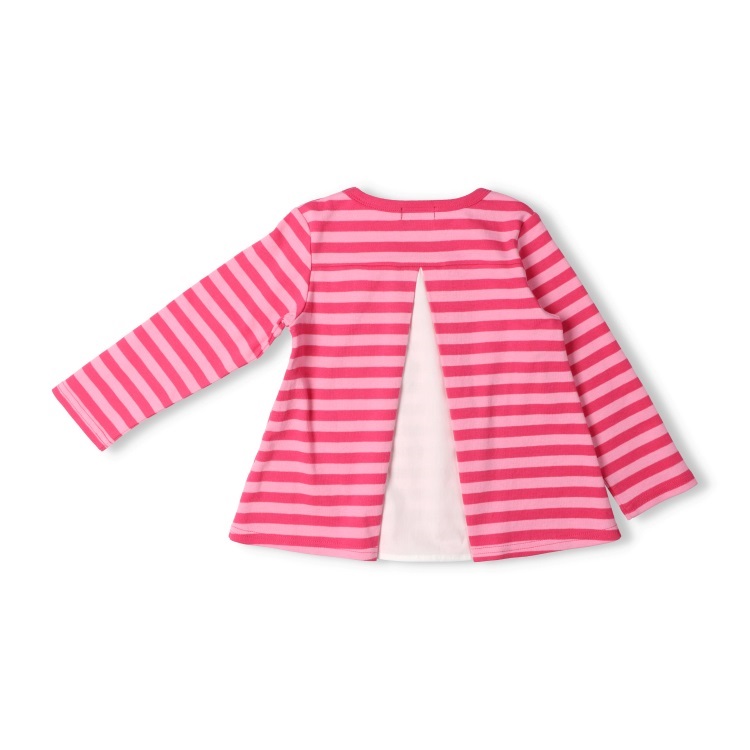 *後ろ切替ボーダー長袖Tシャツ(ピンク-100cm)