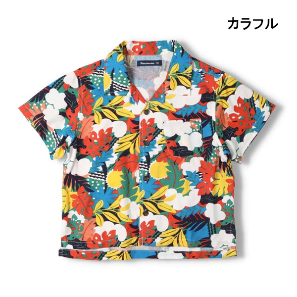 ボタニカル柄レーヨン半袖シャツ(カラフル-100cm)