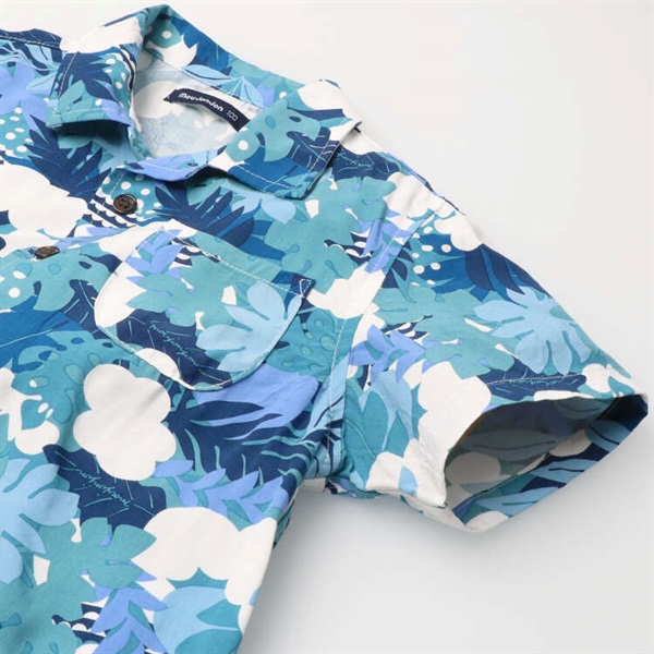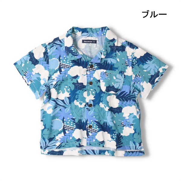 ボタニカル柄レーヨン半袖シャツ(ブルー-120cm)