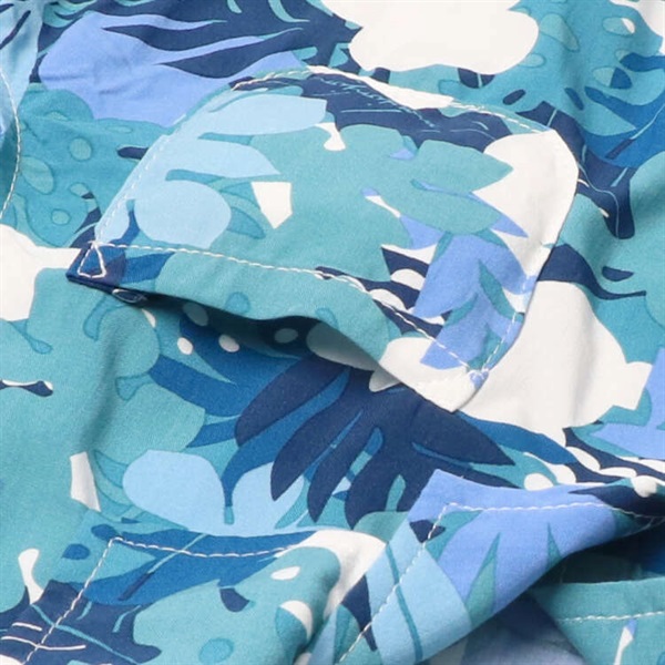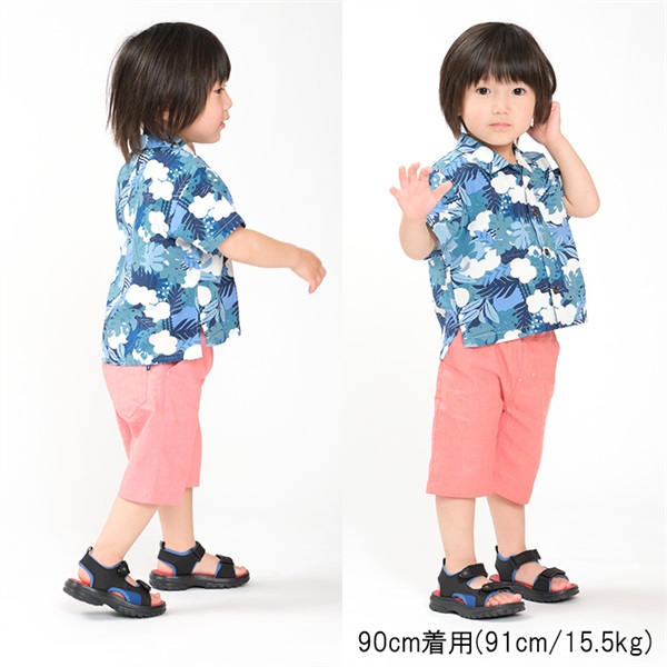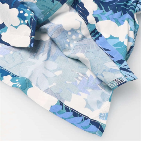 ボタニカル柄レーヨン半袖シャツ(ブルー-90cm)