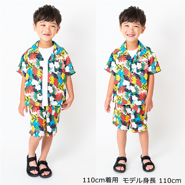 ボタニカル柄レーヨン半袖シャツ(カラフル-110cm)
