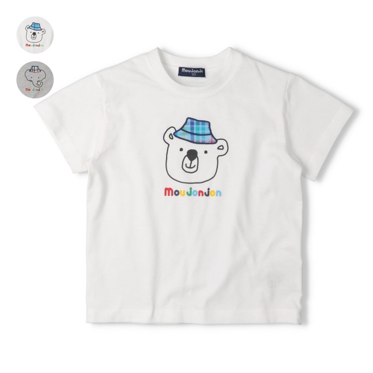 *【接触冷感】チェックアップリケ動物プリント半袖Tシャツ(ホワイト-80cm)