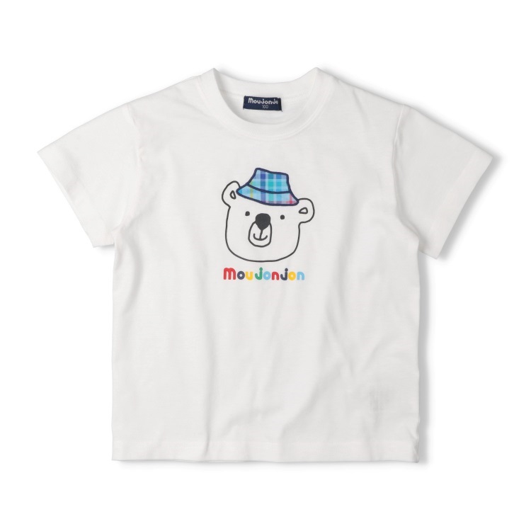 *【接触冷感】チェックアップリケ動物プリント半袖Tシャツ(ホワイト-100cm)