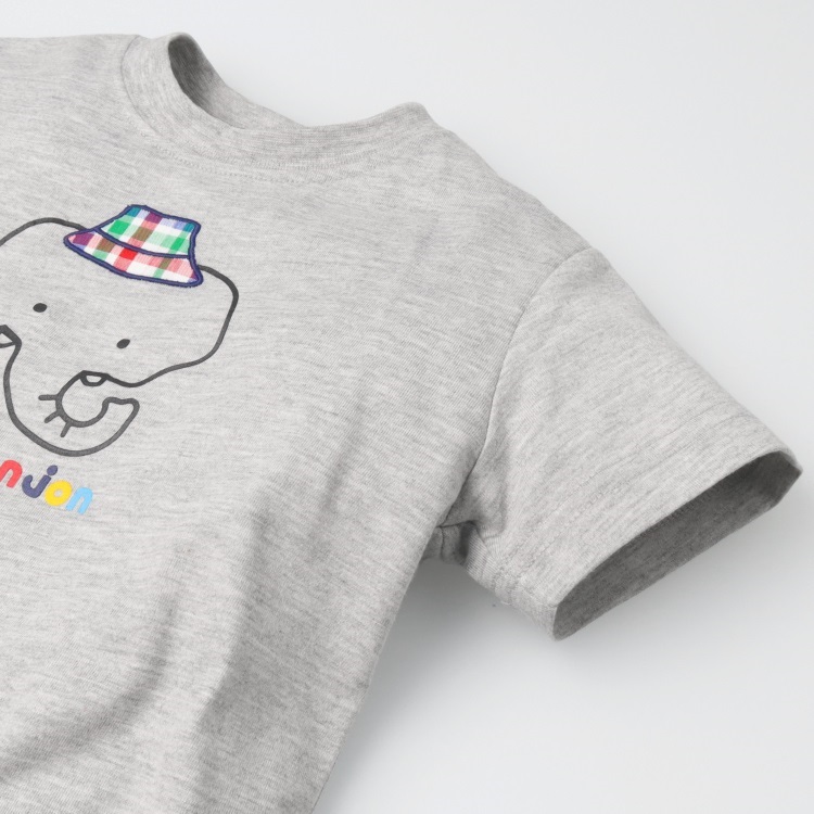 *【接触冷感】チェックアップリケ動物プリント半袖Tシャツ(グレー-80cm)