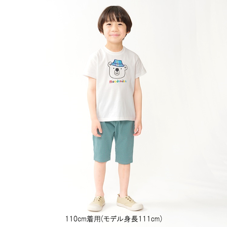 *【接触冷感】チェックアップリケ動物プリント半袖Tシャツ(ホワイト-110cm)