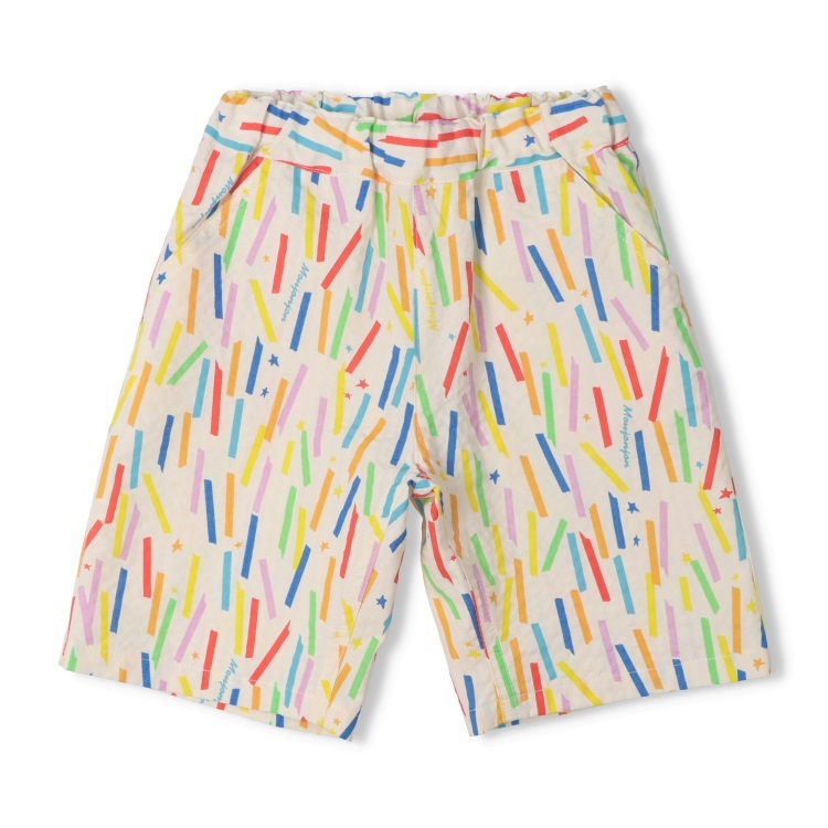 *シアサッカーカラフルプリントハーフパンツ(オフホワイト-100cm)