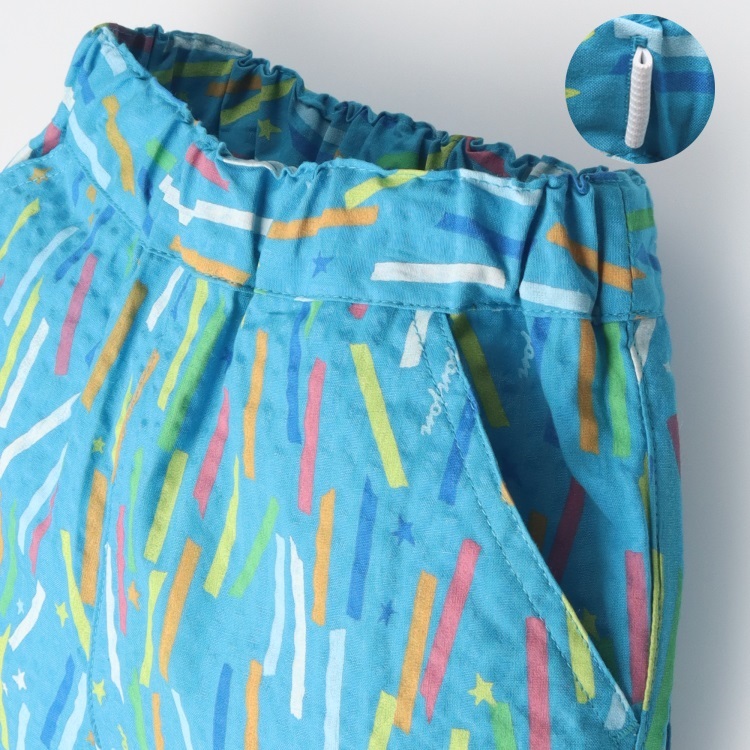 *シアサッカーカラフルプリントハーフパンツ(ターコイズブルー-140cm)