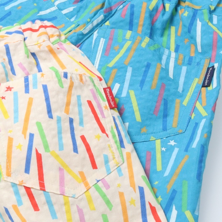 *シアサッカーカラフルプリントハーフパンツ
