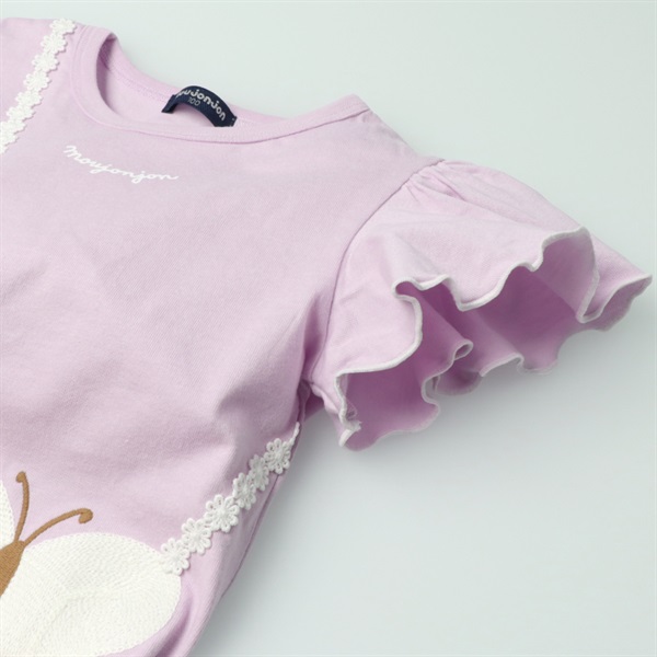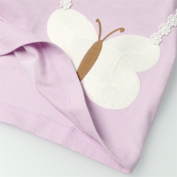 ちょうちょポシェット刺繍半袖Tシャツ(ラベンダー-100cm)