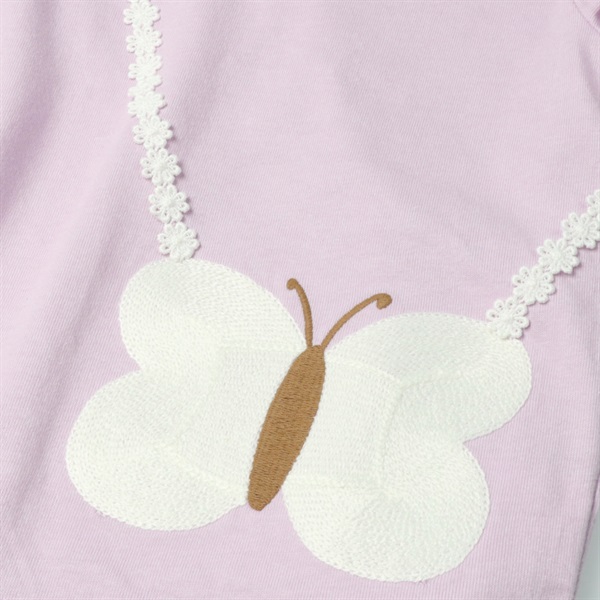 ちょうちょポシェット刺繍半袖Tシャツ(ラベンダー-80cm)