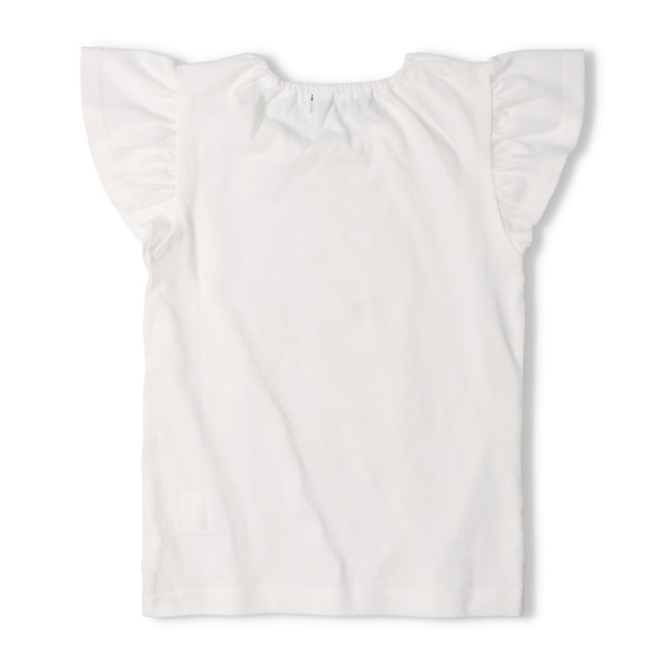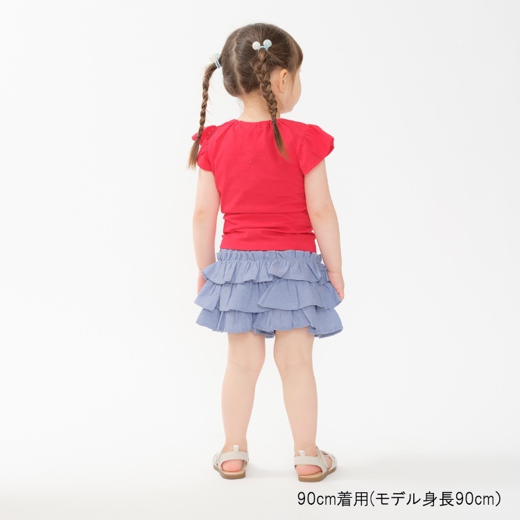 フレアーな袖も女の子らしい半袖Tシャツ。