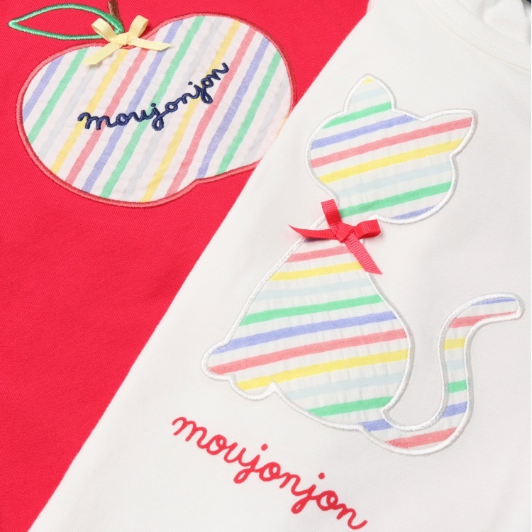 ねこ・りんごアップリケ半袖Tシャツ